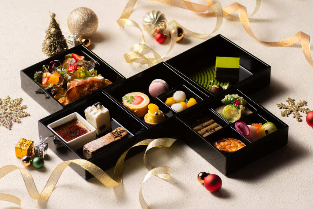 八坂の塔をイメージした五段のお重に、季節のスイーツやセイボリーを彩った”京KASANE”。